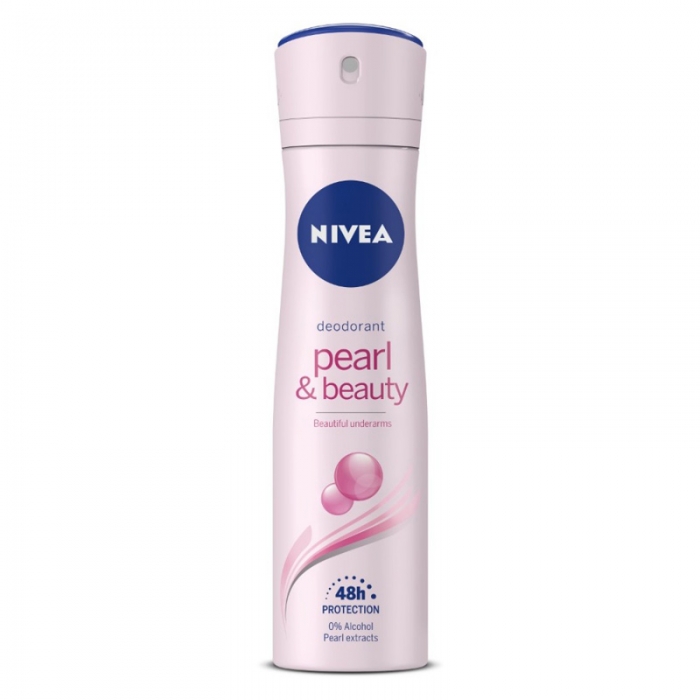 NIVEA Pearl & Beauty anti-perspirant deodorant with precious pearl extracts evens out your skin tone and offers you velvety smooth & beautiful underarms. The deodorant combines 48 hours reliable protection against sweat and body odour with care for your underarm skin. A modern airy accord infused with a sparkling berry cocktail in the top notes gives instant freshness to this creation before juicy peach and a delicate floral bouquet of violet, jasmin, freesia and muguet unveil in the heart. Base notes of creamy sandalwood, warm vanilla and soft musk give a caring and powdery beauty facet to this creation.