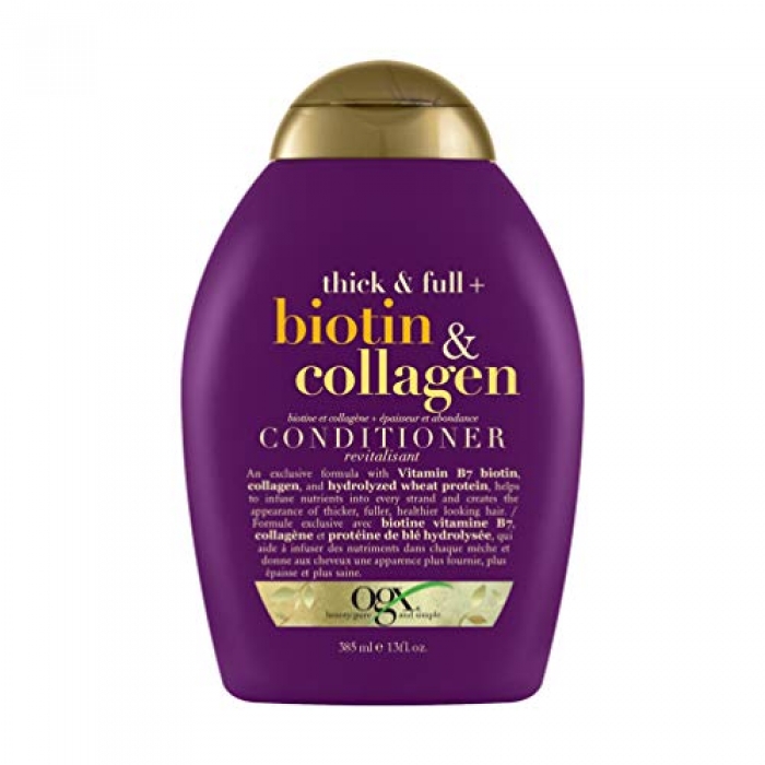 OGX XS Biotin & Collagen Conditioner is a volume-creating powerhouse with an extra helping of vitamins and proteins to pump up flat strands. Extra body doesn’t mean extra weight with a thickening, sulfate-free surfactant blend of nourishing ingredients for full, voluminous hair. Biotin, or vitamin B7, is crucial for skin, nail, and hair health. Paired with collagen, this blend helps nourish hair for a full, healthy look. Be ready for a night out with extra strength conditioning designed to fill your strands with life and body. OGX XS biotin conditioner helps provide more volume than regular strength conditioner, so show off those full strands! This premium ingredient blend infused with bamboo fiber extract and hydrolyzed wheat protein creates a color-safe plumping conditioner designed to nourish hair with everything it needs to look healthy and beautiful.